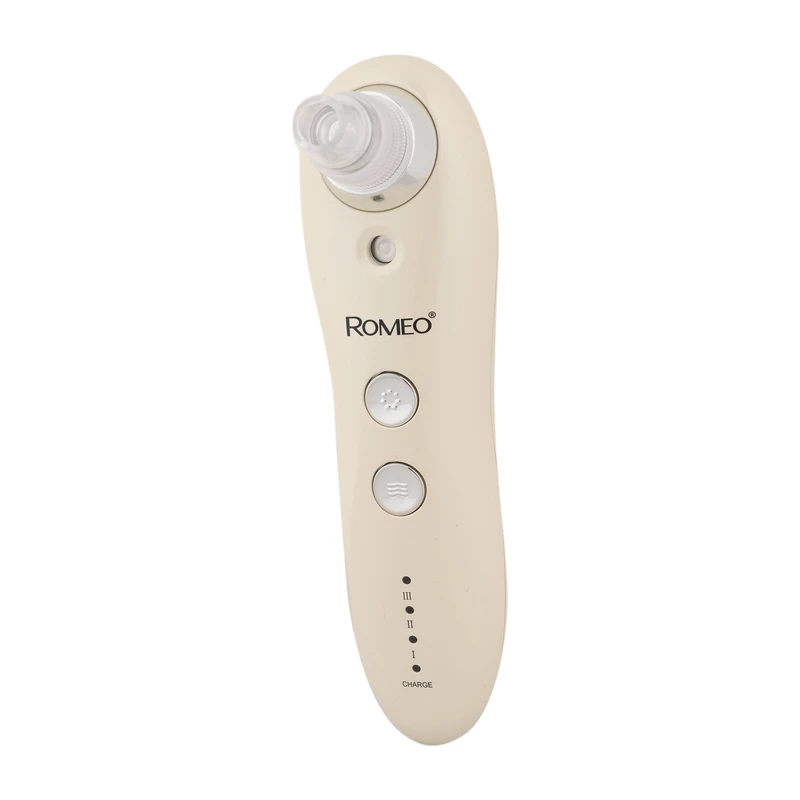 دستگاه میکرودرم رومئو مدل RM-4646 یک پاککننده حرفهای پوست با طراحی مدرن و عملکرد سهگانه است. این دستگاه ترکیبی از میکرودرم ، مکش جوشهای سرسیاه و اسپری آبرسان صورت را در قالب یک محصول ارائه میدهد تا پوستی شاداب و تمیز به شما هدیه دهد. در مرحله اول، سری الماسی دستگاه با انجام لایهبرداری ملایم، سلولهای مرده پوست را از بین میبرد و به بازسازی سلولهای جدید کمک میکند. در مرحله دوم، مکنده قدرتمند با سه سطح مکش قابل تنظیم، جوشهای سرسیاه، چربی اضافی و آلودگیهای جمعشده در منافذ را خارج میسازد. در مرحله سوم، مخزن بخور و اسپری آبرسان تعبیهشده در دستگاه، رطوبت را به عمق پوست تزریق کرده و باعث آرامش، خنکی و نرمی پوست میشود. این دستگاه مجهز به پورت شارژ USB است و باتری آن در حدود ۱۲۰ دقیقه شارژ کامل میشود. طراحی سبک، قابلیت استفاده بیسیم و داشتن ۴ سری متفاوت برای نواحی مختلف صورت، استفاده از RM-4646 را بسیار ساده و کاربردی کرده است.